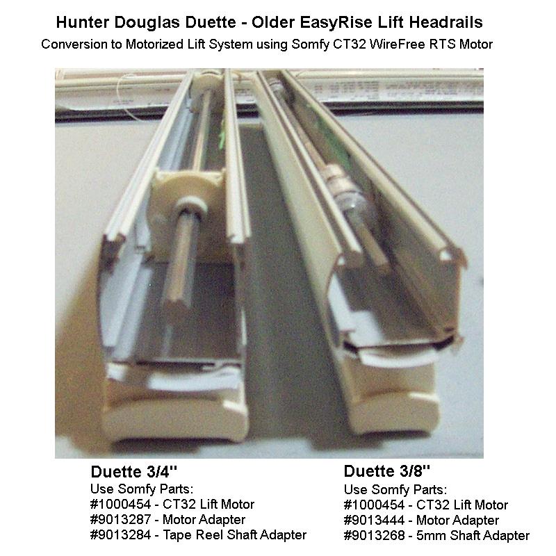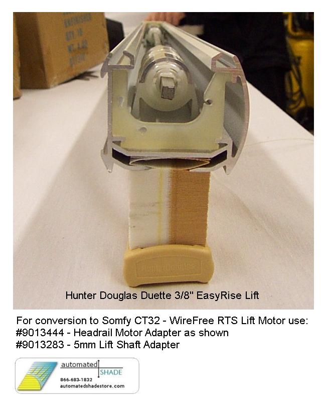 - Connects the Somfy CT32 WireFree Lift Motor to the old style Hunter Douglas EasyRise tape reel shaft