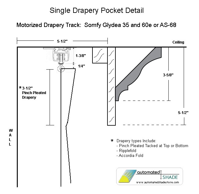 To roughly figure Stackback, use the following formula: - Stackback-PichPleat = Rod Width x .4 (divided by 2 if pair) - Stackback-RippleFold = Rod Width x .5 (divided by 2 if pair) See "Help with Ordering" for more complete explanations.Every Somfy Glydea Motorized Drapery Track we sell is fully assembled, programmed and tested by one of our professionals before it is shipped out to you. This is a custom made product, perfect for your home!