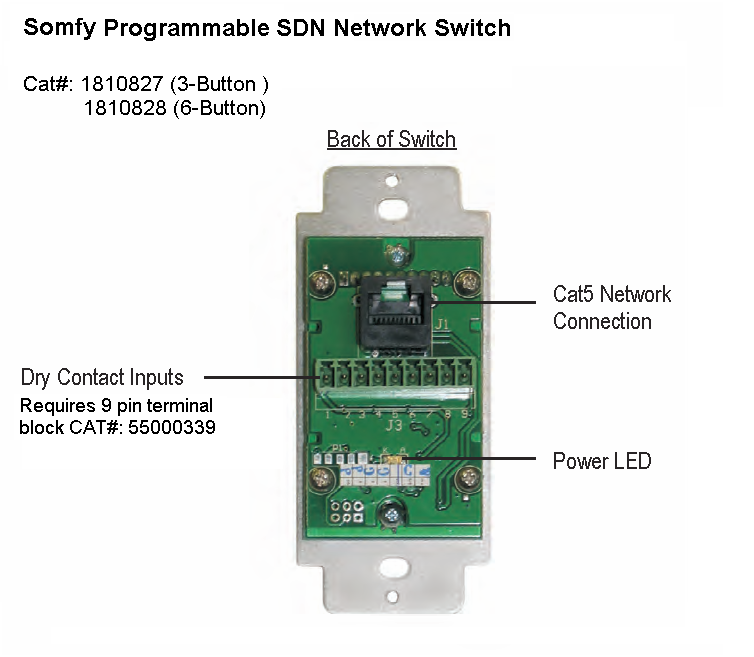 - 6 Fully Programmable Buttons (Requires SDN Smart Switch Configuration Software) available from Somfy